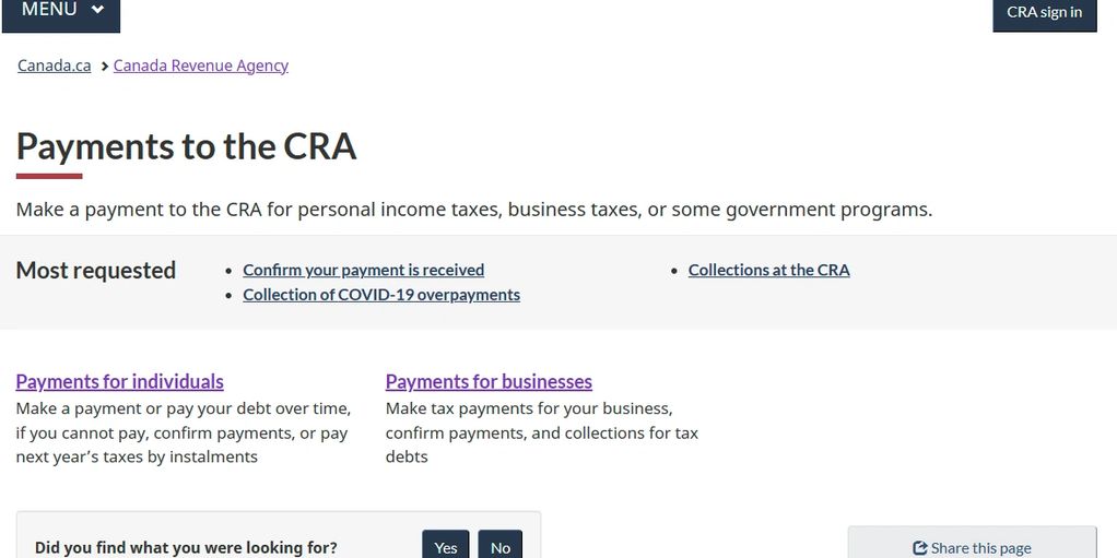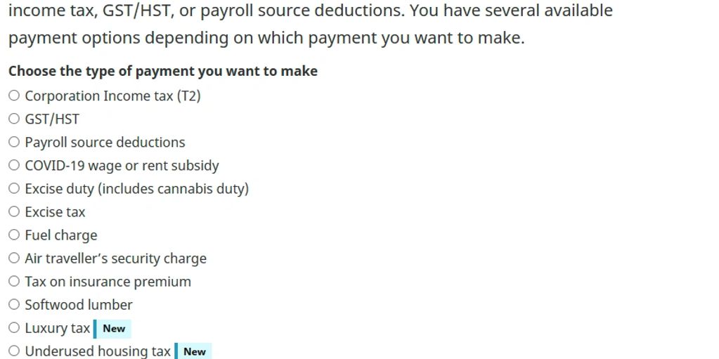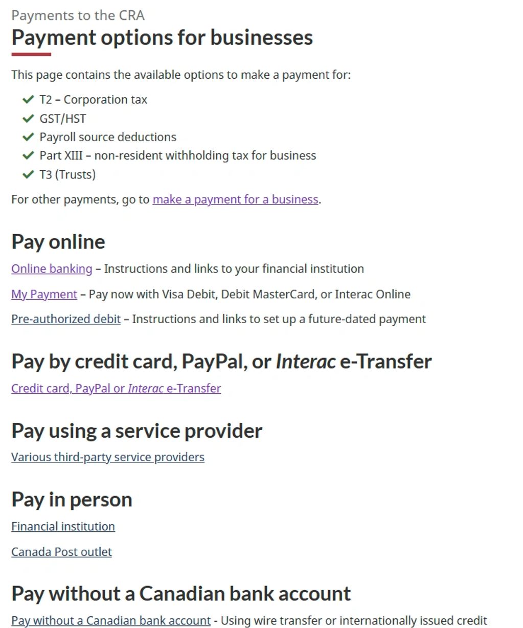 1. Go to payments to CRA., and click on Payments for business then Make payment.